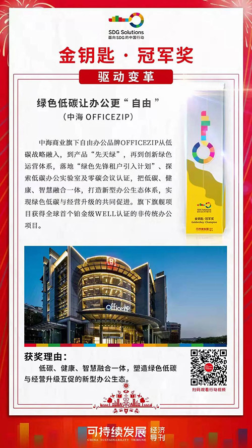 不俗的租賃成績(jī)自然也贏得了行業(yè)廣泛認(rèn)可,OFFICEZIP斬獲了來(lái)自專業(yè)媒體、權(quán)威機(jī)構(gòu)發(fā)布的認(rèn)證獎(jiǎng)項(xiàng)。從獎(jiǎng)項(xiàng)范疇來(lái)看,OFFICEZIP之所以運(yùn)營(yíng)成績(jī)耀眼,是因?yàn)樵谥泻5牡讓由虡I(yè)邏輯中,COOC中海商務(wù)和OFFICEZIP自由辦公共同創(chuàng)建著一個(gè)全域商務(wù)生態(tài)共同體。以O(shè)FFICEZIP作為中海商業(yè)在未來(lái)辦公領(lǐng)域探索的橋頭堡,中海憑借強(qiáng)大的生態(tài)鏈能力不斷撬動(dòng)產(chǎn)業(yè)價(jià)值,從而帶來(lái)資管方面的穩(wěn)健提升,而在這其中,"雙碳"就是重要一環(huán)。