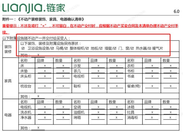 △不動產(chǎn)裝修裝飾、家具、電器確認(rèn)清單