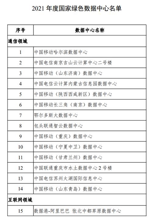 房訊網(wǎng)訊 為加快數(shù)據(jù)中心節(jié)能和能效提升,引導數(shù)據(jù)中心走高效、低碳、集約、循環(huán)的綠色發(fā)展道路,助力實現(xiàn)碳達峰、碳中和目標,工業(yè)和信息化部、國家發(fā)展和改革委員會、商務部、國家機關事務管理局、中國銀行保險監(jiān)督管理委員會、國家能源局確定了44家2021年度國家綠色數(shù)據(jù)中心,并于近日公示。