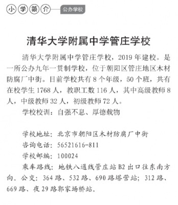 東一時(shí)區(qū)(距離清華附300米):對(duì)應(yīng)學(xué)校為清華附中管莊學(xué)校