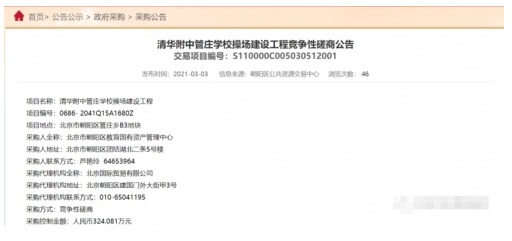 從朝陽區(qū)公共資源交易中心3月3日發(fā)布的信息,了解到清華附中管莊學(xué)校操場(chǎng)建設(shè)工程競(jìng)爭(zhēng)性磋商公告。