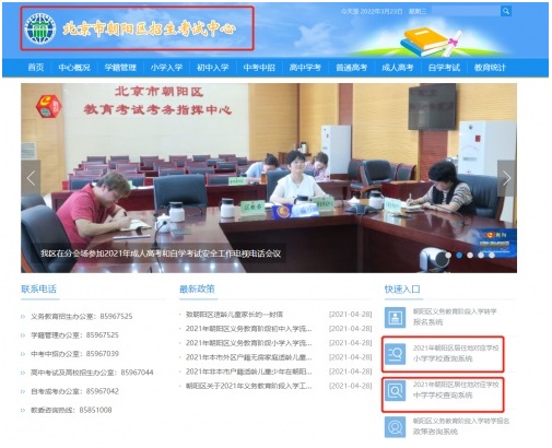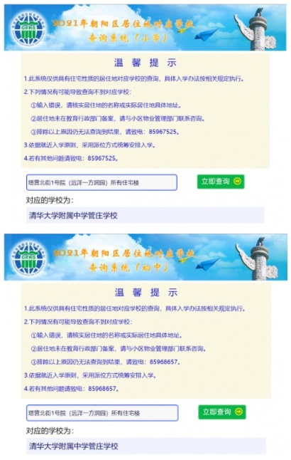 第一步:北京市朝陽區(qū)招生考試中心,官方查詢,小學(xué)與初中居住地對(duì)應(yīng)學(xué)校:
