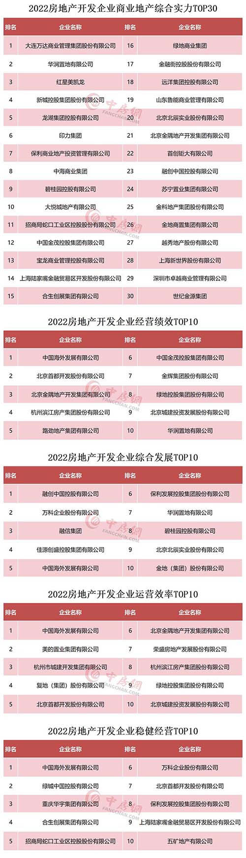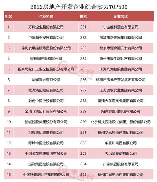 2022房地產(chǎn)開發(fā)企業(yè)綜合實力TOP500測評成果