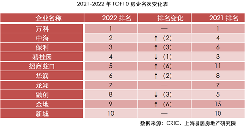 與2021年相比,2022年榜單變動率明顯變大。其中,TOP10變動率為20%, TOP50變動率為26%。產(chǎn)品品質(zhì)優(yōu)秀,財務(wù)成本控制良好的房企排名提升明顯。規(guī)模巨大,但流動性出現(xiàn)問題的房企則排名下降較多。