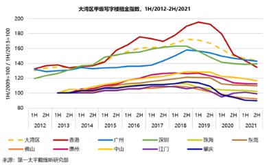 多因素影響下,大灣區(qū)甲級寫字樓租金及價格指數(shù)環(huán)比齊降