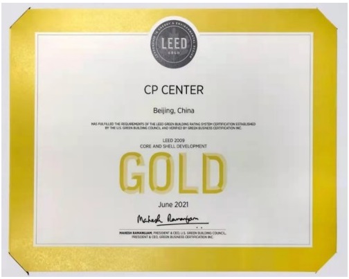 圖注:正大中心榮獲LEED金級(jí)認(rèn)證