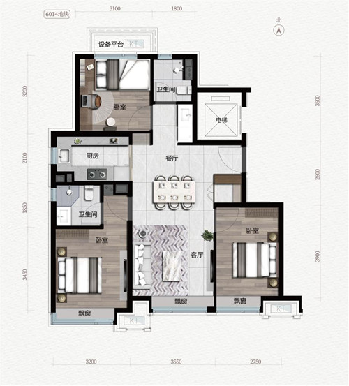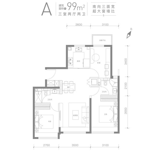 項(xiàng)目的主力戶型為107平米的三居,戶型方正、三開間朝南,尺度與面寬舒適;雙臥套房、獨(dú)立家政間,提升日常生活便利;收納做到極致,飄窗也充分做好收納細(xì)節(jié),不浪費(fèi)每一平米。