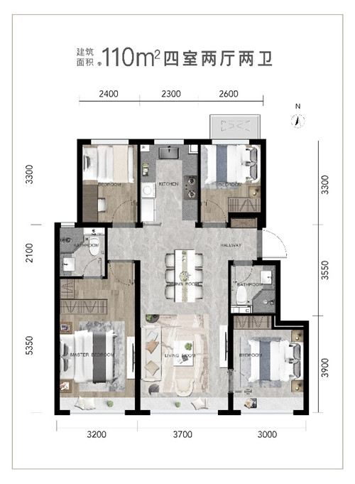110㎡的四居,在目前朝陽的市面上也非常稀貴。110的尺度,同樣得益于洋房的高得房率,卻擁有超越市場上高層產(chǎn)品120㎡戶型的舒適尺度。經(jīng)典的四葉草,四間臥室相互獨(dú)立,隱私性得到極好的保護(hù)。