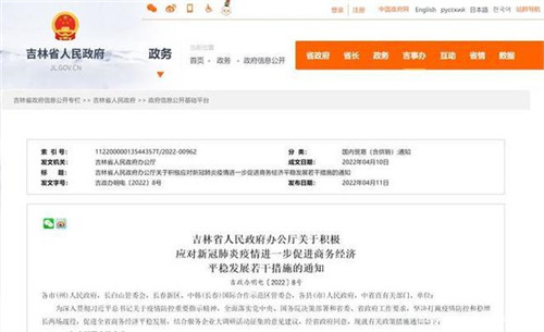 吉林省人民政府辦公廳關于積極應對新冠肺炎疫情進一步促進商務經(jīng)濟平穩(wěn)發(fā)展若干措施的通知