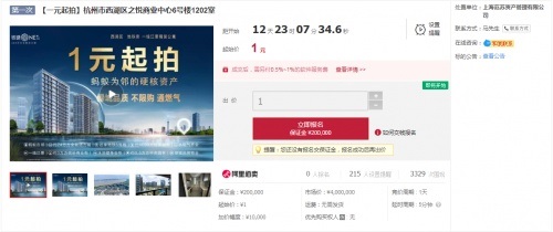 此次,阿里資產(chǎn)聯(lián)合開發(fā)商,將杭州市西湖區(qū)之悅商業(yè)中心6號樓1202室和1506室,也將于5月9日10時、5月12日10時以1元起拍賣。