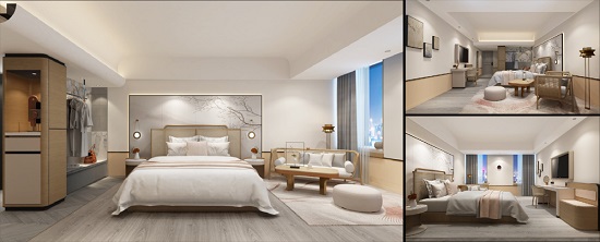 蘭歐酒店用溫潤的中性色主導(dǎo)空間構(gòu)造,色彩的跳躍強化了空間視覺張力,溫文爾雅、簡約精致的高雅氣質(zhì)貫穿于細(xì)微感觸,同時借助至純精致素色家具或中性色軟裝削弱空間視覺膨脹感,打造出平衡舒適的空間視覺效果,為賓客帶來置身藝術(shù)寢宮的夢幻感官。