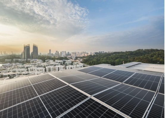 圖說:位于新加坡的吉寶灣大廈安裝了光伏面板。該大廈于2020年獲新加坡建設(shè)局認(rèn)證為綠色建筑標(biāo)志零能耗白金獎,成為新加坡首座獲得這項認(rèn)證的商業(yè)建筑。
