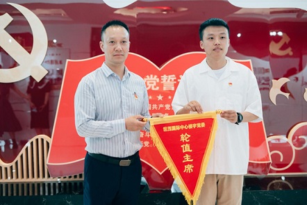 現(xiàn)場,世茂天成物業(yè)服務(wù)集團有限公司福州分公司黨支部與雅林集團黨支部進行了世茂國際中心樓宇黨委“輪值主席”流動紅旗交接儀式。