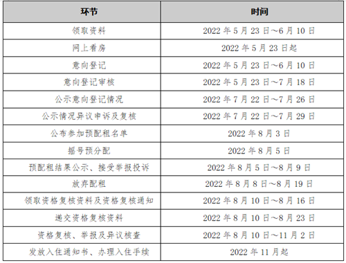 據(jù)了解,本次公租房分配分為14個步驟:領(lǐng)取資料,網(wǎng)上看房,意向登記,意向登記審核,公示意向登記情況,公示情況異議申訴及復(fù)核,公布參加預(yù)配租名單,搖號預(yù)分配,預(yù)配租結(jié)果公示、接受舉報投訴,放棄配租,領(lǐng)取資格復(fù)核資料及資格復(fù)核通知,遞交資格復(fù)核資料,資格復(fù)核、舉報及異議核查,發(fā)放入住通知書、辦理入住手續(xù)。其中,搖號預(yù)分配為8月5日,發(fā)放入住通知、辦理入住手續(xù)為今年11月起。