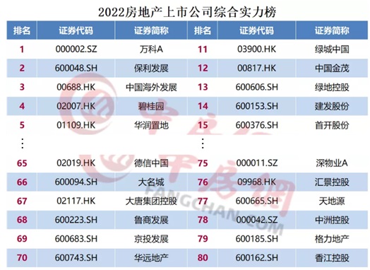 * 中房網(wǎng)發(fā)布2022房地產(chǎn)上市公司綜合實力榜單
