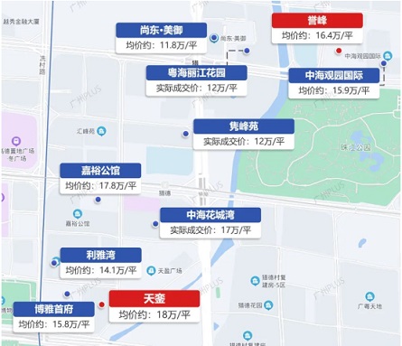 像是天鑾目前的二手均價已經(jīng)高達18萬/平,而譽峰目前的二手掛牌價已去到16.4萬/平,與周邊其他區(qū)域形成明顯價差。