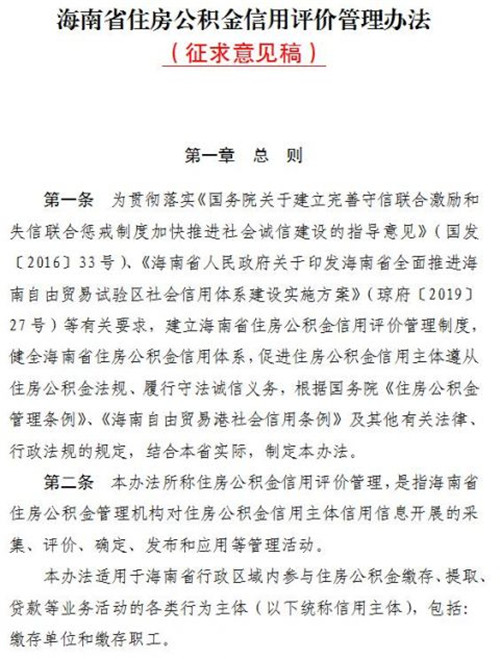 據(jù)海南省住房和城鄉(xiāng)建設廳網(wǎng)站消息,海南住房公積金管理委員會辦公室日前公布《海南省住房公積金信用評價管理辦法(征求意見稿)》,向社會公開征求意見。