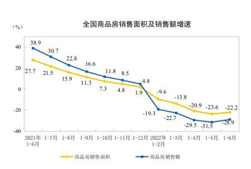 國(guó)家統(tǒng)計(jì)局15日發(fā)布的數(shù)據(jù)顯示,上半年,全國(guó)房地產(chǎn)開發(fā)投資68314億元,同比下降5.4%;其中,住宅投資51804億元,下降4.5%。全國(guó)商品房銷售面積68923萬平方米,下降22.2%;商品房銷售額66072億元,下降28.9%。