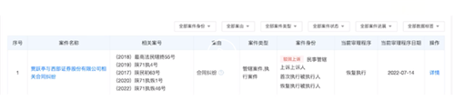 天眼查信息App顯示,近日,樂視控股集團創(chuàng)始人賈躍亭新增一則恢復(fù)執(zhí)行案件,案號(2022)陜71執(zhí)恢46號,執(zhí)行標(biāo)的約10.45億元,執(zhí)行法院為西安鐵路運輸中級法院,涉及案件為賈躍亭與西部證券股份有限公司相關(guān)合同糾紛。