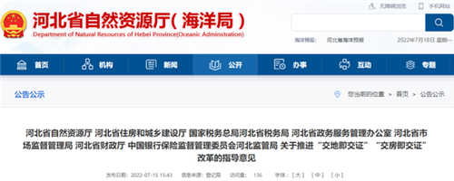 房訊網(wǎng)訊 近日,河北省自然資源廳、河北省住房和城鄉(xiāng)建設(shè)廳等七部門發(fā)布《關(guān)于推進“交地即交證”“交房即交證”改革的指導意見》。