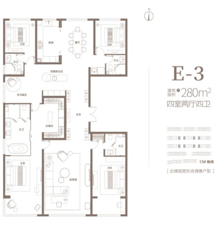 豪宅標準要素3:居住的舒適性。項目的戶型空間尺度足夠大,功能分區(qū)合理,能夠滿足全年齡家庭空間設(shè)計需要。