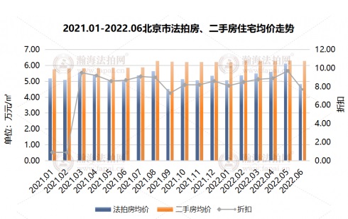 2022年上半年,北京市法拍房?jī)r(jià)格優(yōu)勢(shì)持續(xù)顯現(xiàn),由于法拍房市場(chǎng)更加公開(kāi)和透明,標(biāo)準(zhǔn)化和成熟度不斷提升,整體住宅成交折扣日趨平穩(wěn)。在整體樓市震蕩期,6月份,北京法拍房折扣在7.8折低位運(yùn)行。