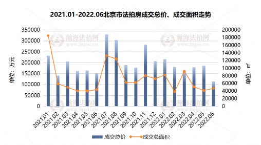 2022年上半年,北京法拍房市場(chǎng)成交總金額為103.89億元,成交面積為35.21萬(wàn)㎡,同比微跌15.64%,預(yù)計(jì)隨著后續(xù)樓市回暖,成交總額和成交面積有望回調(diào)。