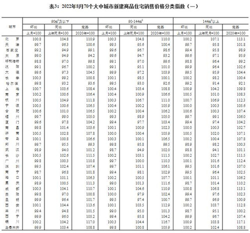 房訊網(wǎng)訊 9月16日,國(guó)家統(tǒng)計(jì)局發(fā)布2022年8月份70個(gè)大中城市商品住宅銷售價(jià)格變動(dòng)情況。