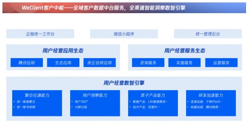 WeClient有機集成了騰訊眾多優(yōu)勢能力,運用到地產(chǎn)用戶經(jīng)營場景的行業(yè)紐帶。整合了企業(yè)微信、企點營銷、安心平臺、騰訊位置服務(wù)、優(yōu)圖AI、騰訊會議等騰訊優(yōu)勢產(chǎn)品,應(yīng)用到活動投放、行銷拓客、全面營銷、社交營銷、投拓客研、用戶洞察、自動化營銷、智慧案場、會員運營等應(yīng)用場景。