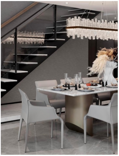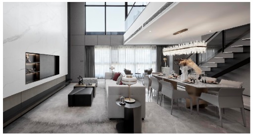 科克也說:“每個(gè)人的家,對(duì)他自己都像是城堡和要塞”。一所自洽的房子撐起內(nèi)心所求的一整個(gè)世界。它專屬于你,承載了你身上獨(dú)一無二的氣息與味道,同時(shí)令自己松弛放松,就像收獲了良性的“心里磁場(chǎng)”。推開玄關(guān)大門,客廳挑空呈大開間格局,上下兩層視線相通,最大程度實(shí)現(xiàn)了引光和引景入室。格局、動(dòng)線與用色、肌理,遵循“不框定、非設(shè)限、無標(biāo)簽”的這一設(shè)計(jì)原則,一切看起來令人放松、守序又柔和。