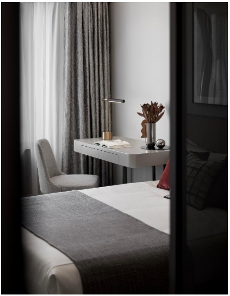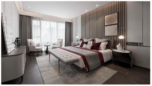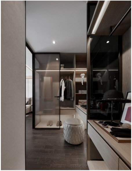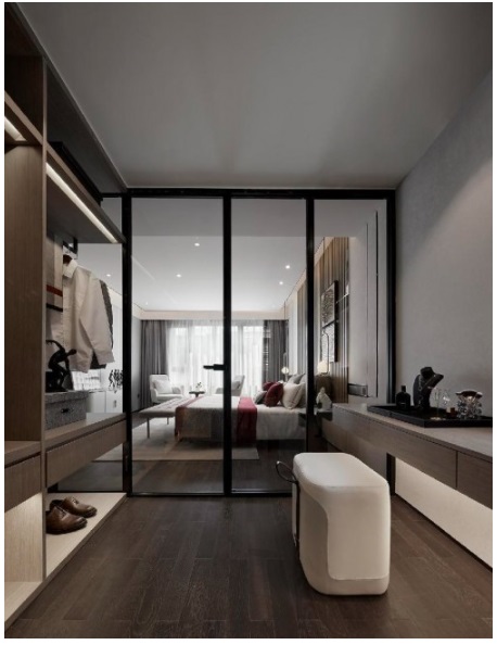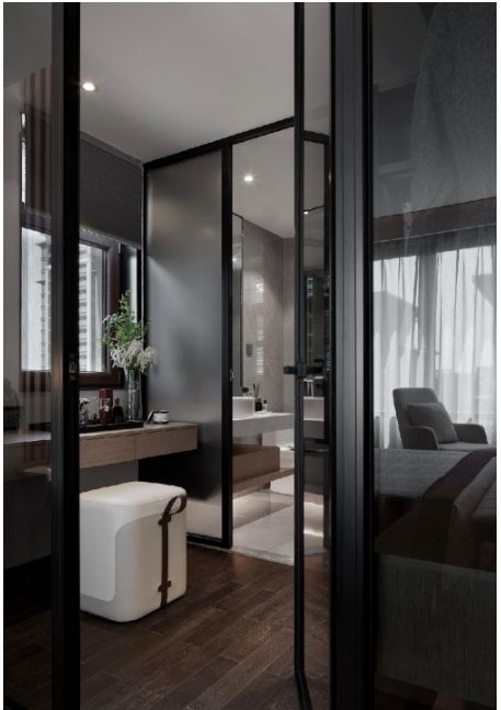 一層套房在空間的把控和使用上,實(shí)現(xiàn)的是一種哲思上的自我界限感,界而未界,無形卻清晰。設(shè)計(jì)利用材質(zhì)的通透性去突破功能之間的束縛,簡(jiǎn)而不凡,松弛愜意。