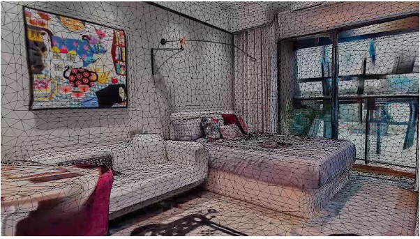 目前VR看房主要有3D實景和360°全景照片兩類。360°全景照片采用的技術路線類似于折紙建模的原理,先使用全景相機拍出照片,然后找出墻角線并折疊形成三維空間,其內(nèi)部物體都是純平面的,場景切換上采用的是點對點跳轉方式;而眾趣VR看房服務提供的3D實景,在保證了場景高還原度的同時兼顧了高效率與低成本,眾趣科技將二維圖片通過Al預測,賦予三維的點云“深度”,將2D圖像轉為3D點云空間,實現(xiàn)AI自動建模,不需要人工操作。場景切換上采用移步換景方式,能夠全方位展示房屋三維結構、戶型數(shù)據(jù)、尺寸信息等多內(nèi)容。