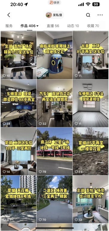 但像這種改善性需求的購房客戶只是少數(shù),在郭涵看來,快手用戶年齡很符合市場的購房群體,長春外五縣,以及一些周邊城市的人們基本都在玩快手,“來找我購房的也是外地群體偏多,基本都是希望為在長春學(xué)習(xí)、工作的孩子購房,想讓他們盡快安定下來的家長”。