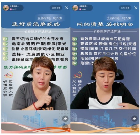 在她看來,“解讀”是房產(chǎn)主播的責(zé)任之一,“比如長春最近出臺了11條樓市政策,很多粉絲看了就覺得很多字好像沒看懂,我就會用更淺顯易懂的語言讓大家一聽就懂,避免畢業(yè)生、外地常住人口這些人群錯過這些利好”。