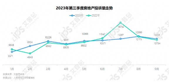 圖1:2023年第三季度房地產(chǎn)投訴量走勢