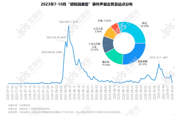 圖2:2023年7-10月“碧桂園暴雷”事件聲量走勢及站點(diǎn)分布