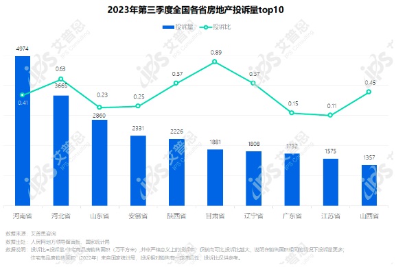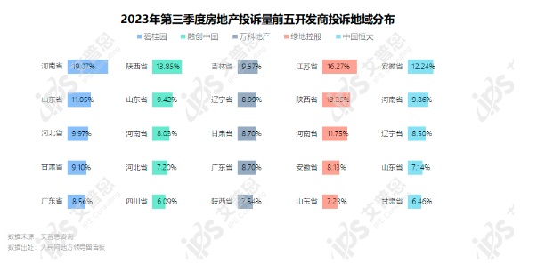 2023年第三季度房地產(chǎn)投訴地域分布:陜西省投訴量同比下降39.03%