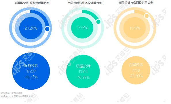 2023年第三季度,質(zhì)量投訴與服務(wù)投訴重合率24.20%,較去年同期下降0.04%;合同投訴與服務(wù)投訴重合率17.59%,與去年同期基本持平;質(zhì)量投訴與合同投訴重合率為11.47%,較去年同期增長4.06%。
