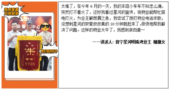 00后業(yè)主 楊女士:星河物業(yè)頂呱呱,和這個錦旗很配哦~
