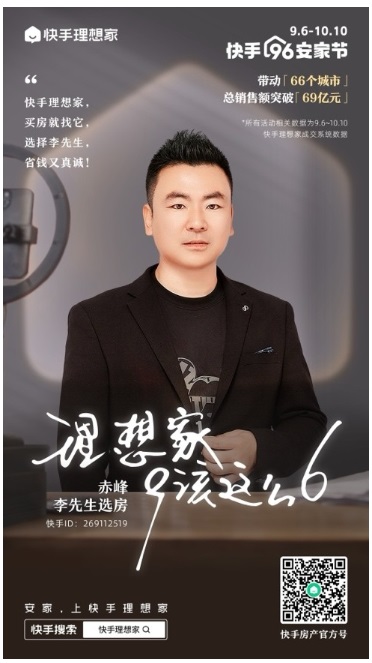 今年,李偉建參與了快手理想家96安家節(jié),活動不僅平臺吸引了超460萬人參加,帶動66個城市的超900個樓盤成交,總銷售額突破69億,李偉建更實現(xiàn)了500萬的業(yè)績。