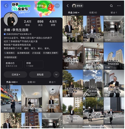 就這樣,他注冊了名為“赤峰·李先生選房”的快手賬號,開始經(jīng)營起自媒體售房的事業(yè)。但做房產(chǎn)賬號不是件容易事,李先生既要摸著石頭過河又要兼顧公司業(yè)務(wù)和管理職責,身兼數(shù)職他深感疲累,“就感覺什么都想做的結(jié)果就是什么都做不好”。思來想去,他決定逼自己一把,“我跟公司提了離職,打算全身心投入做短視頻直播”。