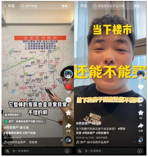 帶著這一理念,在賬號的內(nèi)容創(chuàng)作上,張勃將“塑造人設(shè)IP、沉淀信任私域”放在首位,并淡化房產(chǎn)業(yè)務(wù)交易的目的性。在短視頻作品中,張勃以口播內(nèi)容為主,聚焦房產(chǎn)政策方向、西安房產(chǎn)市場的發(fā)展走向、購房者選房購房需要關(guān)注的因素等干貨知識。