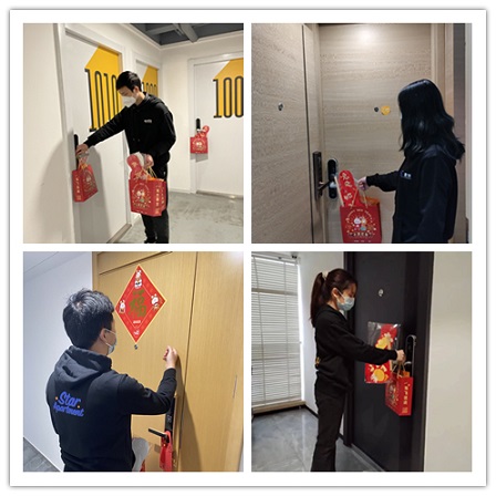 完成福袋打包后,門店管家把這份用心的春節(jié)驚喜一一為租客派送到家!租客們可以開心地吃著新年糖果零食,貼上新春對聯(lián),異鄉(xiāng)的春節(jié)也充滿儀式感。