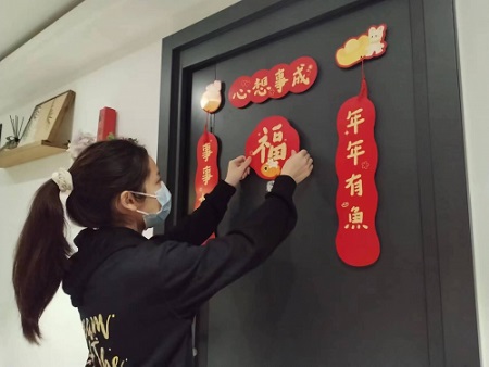 在越秀星寓荔灣花海店,迎春裝飾皆由管家親手布置,只為讓每一位星友都能有家的歸屬感!步入公區(qū)春節(jié)氛圍拉滿,紅紅火火的福字燈籠拉花,賦有美好祝福的兔年紙扇,讓留廣的異鄉(xiāng)青年溫暖過年;