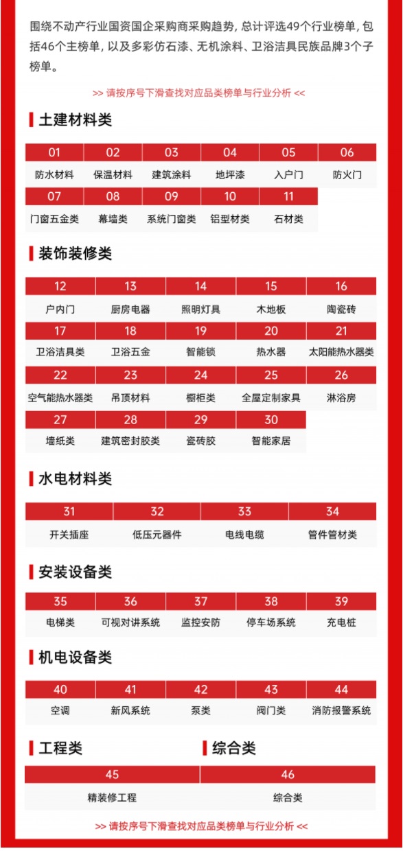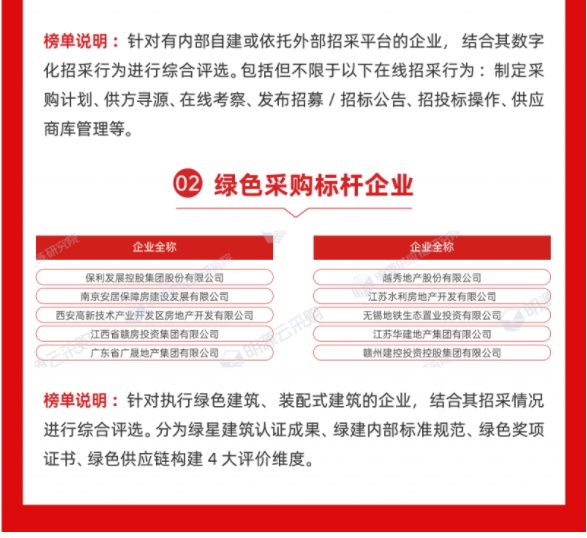 在供應(yīng)商端:結(jié)合行業(yè)大數(shù)據(jù)與過去一年國資國企采購商真實履約情況,為行業(yè)評選出“國資國企精選供應(yīng)商十強(qiáng)”“區(qū)域服務(wù)力首推品牌”。高效賦能不動產(chǎn)供應(yīng)鏈,助推行業(yè)良性發(fā)展。
