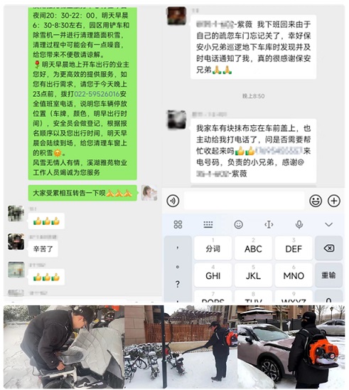 面對斷崖降溫、大風暴雪等極端天氣,路面除雪、設(shè)施防護、水電暖設(shè)備檢修……天津星河智善生活物業(yè)服務(wù)團隊全力做好各項保障。在這個寒冷的暴雪天氣,他們的熱情服務(wù)和責任擔當,就像一股股暖流,融化了積雪,也融化了業(yè)主的心。