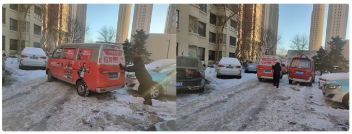 持續(xù)降雪,路面結(jié)冰,很多業(yè)主的汽車無法發(fā)動或者打滑,濱瑞花園項目安全員挺身而出,在易結(jié)冰路段駐守,化身“推車俠”,幫助一輛又一輛車順利啟動!皫讉小時下來手臂酸痛,也摔倒過,但是車能動了,我心里高興!