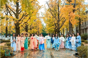 寒霜降臨銀杏黃,初冬美景入畫來。活動(dòng)現(xiàn)場(chǎng),古風(fēng)場(chǎng)景與金黃色的銀杏葉交相輝映,美不勝收。銀杏仙子與十二花神驚艷亮相,為現(xiàn)場(chǎng)觀眾帶來了一場(chǎng)視覺盛宴。她們身著華美的漢服,優(yōu)美的舞姿與悠揚(yáng)的音樂相得益彰,讓人們仿佛穿越時(shí)空,一覽古時(shí)的盛世繁華,F(xiàn)場(chǎng)觀眾紛紛拿起手機(jī)記錄下這美麗的瞬間!叭松傄┮淮螡h服,永遠(yuǎn)會(huì)被傳統(tǒng)文化的魅力打動(dòng)”,觀眾席一位小姐姐感嘆道。