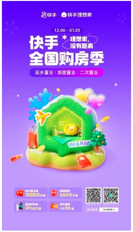 不久前,快手理想家剛發(fā)起跨城聯(lián)賣冬季購房節(jié),已經(jīng)落地“大連-西雙版納州跨城聯(lián)賣”、 “鞍山-珠?绯锹(lián)賣”兩場活動(dòng),這意味著基于直播短視頻平臺(tái)的跨城聯(lián)賣新模式成型。而此次全國購房季正是跨城聯(lián)賣冬季購房節(jié)的升級(jí),快手理想家希望以更多的福利資源補(bǔ)貼,滿足平臺(tái)用戶差異化購房需求,讓用戶更簡單方便實(shí)現(xiàn)異地安家。