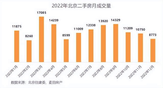 根據(jù)北京住建委官網(wǎng)數(shù)據(jù)統(tǒng)計(jì),12月北京二手房成交8773套,環(huán)比上月減少18.4%,同比下滑43.2%。麥田房產(chǎn)數(shù)據(jù)顯示,12月實(shí)際成交量和帶看量跟上月相比下滑明顯。